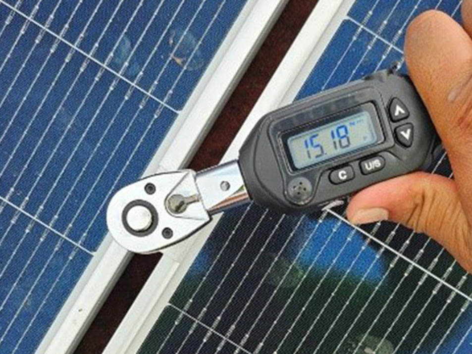 การตรวจวัดแรงในการขันน็อตให้ตรงตามสเปคของผู้ผลิตแนะนำเพื่อให้ได้ความมั่นคงแข็งแรงตามมาตรฐานในการติดตั้งแผงโซลาร์เซลล์